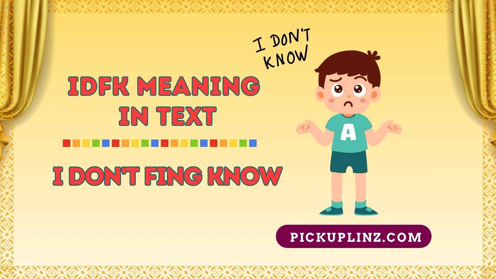 The acronym IDFK stands for “I don’t fing know”. It’s an emphatic way to express confusion, uncertainty, or lack of knowledge about a subject. The addition of “fing” intensifies the emotion, showing stronger frustration, surprise, or honesty compared to simply saying “I don’t know.”