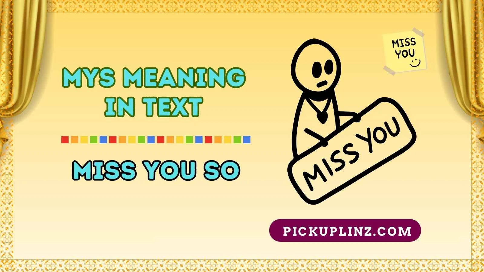 The term “mys” is an abbreviation whose meaning can vary depending on the context. In general texting and social media, it is often shorthand for “miss you so” or “miss you”, expressing affection or longing in a casual, concise way. It is similar to other texting abbreviations like “ily” (I love you) or “brb” (be right back).